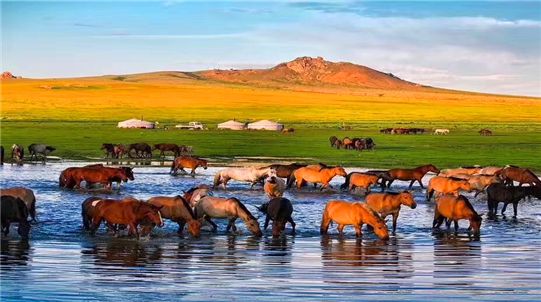 海拉爾出發(fā),驅車(chē)前往【呼倫貝爾大草原】穿越草原帶您進(jìn)去草原腹地,感受一代成吉思汗發(fā)跡地。呼倫貝爾草原一眼望不到邊,微風(fēng)吹過(guò)都能聞到清新的青草泥土味,清澈透亮的藍天與朵朵白云,綠草如茵,野花遍地,牛羊成群,點(diǎn)點(diǎn)氈房。牧民騎著(zhù)馬兒飛馳而過(guò),綁在敖包旁的神幡隨風(fēng)起舞。在草原上與親友追逐、奔跑、嬉戲、拍照、打鬧,無(wú)拘無(wú)束,隨心所欲。這里的自然、淳樸、原始足以將身心的疲憊一掃而空。驅車(chē)深入草原70多公里到達【莫日格勒河】人稱(chēng)天下第一曲水。莫日格勒河是蜿蜒在呼倫貝爾大草原上的一條曲折的河水,兩岸芳草遍地,鳥(niǎo)語(yǔ)花香,蝶飛蜂舞,處處馬嘶羊咩。這里也是《嘎達梅林》、《快樂(lè )大本營(yíng)》、《爸爸去哪兒》、《尋龍訣》、《狼圖騰》等眾多影視節目的拍攝地。后驅車(chē)沿著(zhù)草原小路到達【莫日格勒河至高點(diǎn)】眺望莫日格勒河九曲十八灣的美景,看那彎彎曲曲的河流在草原上流淌著(zhù),在這里感受那草原河流的秀美。游動(dòng)草原上的牛群、馬群、羊群,很多潔白的蒙古包盡收眼底,構成一幅完美的草原風(fēng)景畫(huà)。