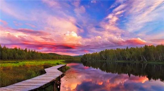 早餐后,驅(qū)車前往【龍巖山】龍巖山上天然林生長(zhǎng)茂密,樟于松,落葉松,白樺、山楊等興安主要樹種應(yīng)有盡有,杜鵑,刺莓,百合,柳蘭等各類花卉比比皆是。山前建有登山通道,山后建有盤山公路。不論是步行還是坐車,站在龍巖山上,確實(shí)是風(fēng)光旖旎,霜染葉紅,林海風(fēng)卷浪涌,云清氣爽,滿山斑斕。山腳下的莫爾道嘎鎮(zhèn)懷抱在大興安嶺的茫茫林海中,好似無(wú)邊綠色中的一塊璀璨寶石。驅(qū)車前往【得耳布爾】得耳布爾為鄂溫克語(yǔ)“寬闊的山谷”之意,得耳布爾鎮(zhèn)地處大興安嶺北麓,山青水秀,漫山遍野的杜鵑花在綠樹的映襯下顯得格外妖嬈;這里的野果種類繁多,有高粱果、藍(lán)莓、牙格達(dá)、稠李子等。一路鳥語(yǔ)花香,穿梭在原始森林到達(dá)【根河】午餐后,驅(qū)車前往【根河源國(guó)家濕地公園】是國(guó)家AAAA級(jí)景區(qū)被專家譽(yù)為“中國(guó)冷極濕地天然博物館”和“中國(guó)環(huán)境教育的珠穆朗瑪峰”,是集森林生態(tài)觀光、房車自駕車營(yíng)地、木屋住宿、餐飲娛樂(lè)、會(huì)議接待、野生動(dòng)物觀賞、冷極灣漂流、高爾夫體驗(yàn)、野生漿果采摘、野外拓展訓(xùn)練、自駕車環(huán)線體驗(yàn)于一體的多功能景區(qū)。游完后驅(qū)車前往【伊克薩瑪國(guó)家森林公園】“伊克薩瑪”是鄂溫克語(yǔ),漢語(yǔ)意思為“美麗寬闊的河”。公園的特點(diǎn)就是那份荒古氣息,最古老的植被、最原生態(tài)的植物造型,沒(méi)有過(guò)多人為的痕跡。林間的景色美得讓人目眩,那份神秘的靜謐更讓人在很多時(shí)候不由得恍惚,覺(jué)得自己穿越了時(shí)空,回到了上古。那最清新的空氣,隨著人的呼吸潔凈著肺葉,在一瞬間,好似來(lái)到了北歐的高山莽林里。艱難地徒步前行,能聽到的只有腳下踩著樹葉的聲音和自己的呼吸聲,仿佛全世界就只剩下了自己。我們慢慢的去欣賞月牙灣、腳印湖、鲇魚灣、西伯利亞紅松林,1409高低等景觀,這里的風(fēng)景美不勝收。